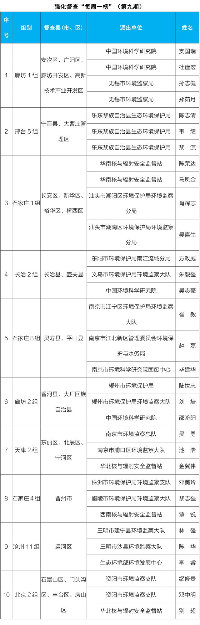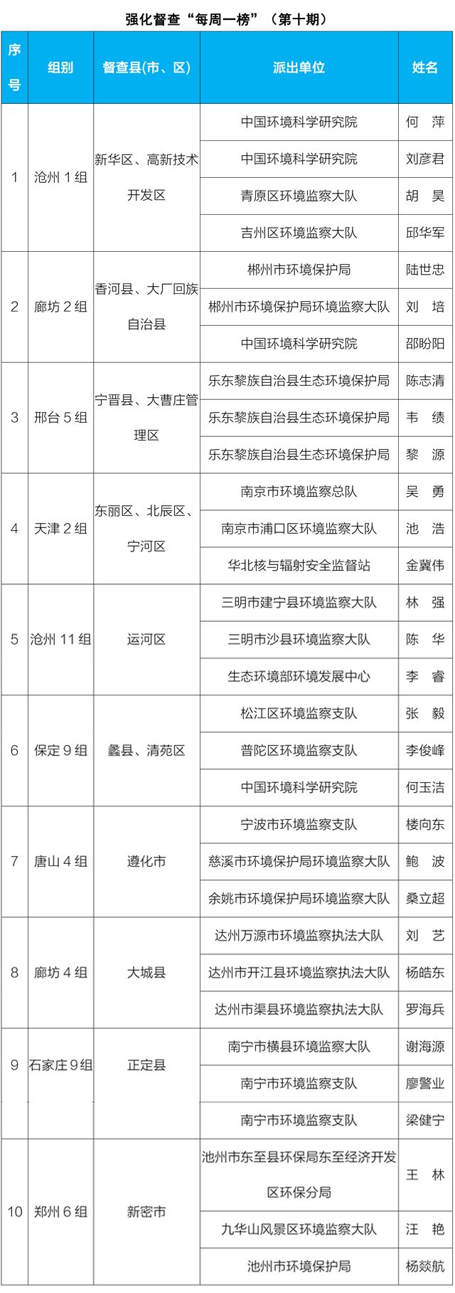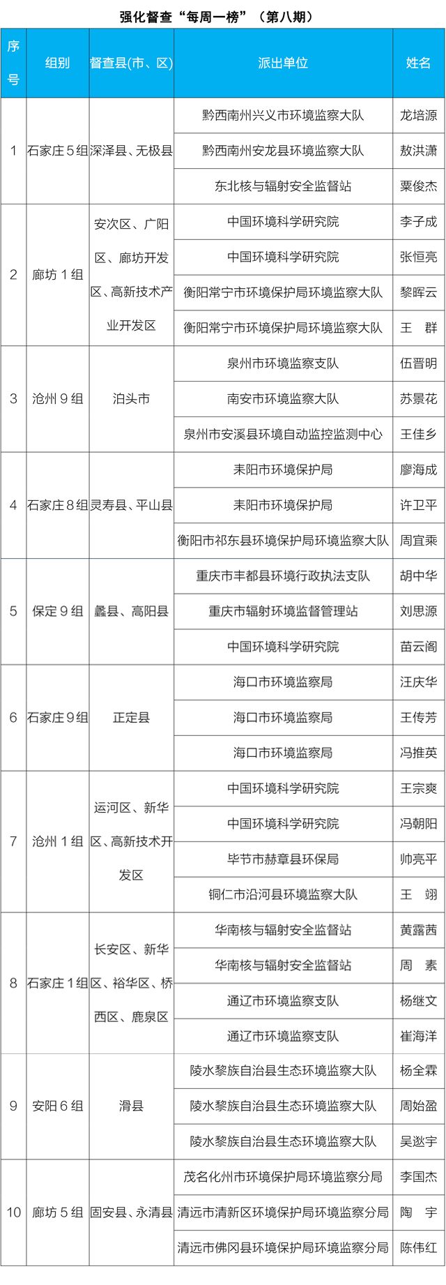 经评定,沧州1组、廊坊2组、邢台5组、天津2组、沧州11组、保定9组、唐山4组、廊坊4组、石家庄9组、郑州6组十个督查组排名第5轮次第2周前十位,其中邢台5组、廊坊2组、天津2组、沧州11组也位列第5轮第1周前十。督查中,上述十组发现新问题总数占比较高,在一周内共检查发现各类涉气环境问题82个,占所有新问题总数的24.6%。紧扣强化督查第一阶段工作重点,重点检查“散乱污”企业整治、燃煤锅炉淘汰、未安装污染防治设施以及设施不正常运行等问题,发现上述问题占比分别为37.5%、63.6%、38.5%、16.7%。