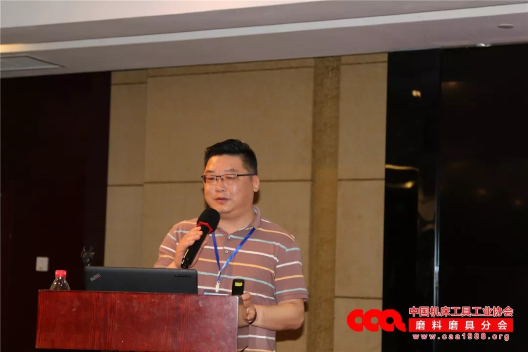 江西冠亿研磨股份有限公司总经理易维民先生作了《低温烧成陶瓷结合剂砂轮产业化技术》的报告,从低温烧成陶瓷结合剂磨具的优势、实现低温烧成陶瓷结合剂磨具的措施以及低温陶瓷刚玉磨料等多角度进行了详细产品技术分享。