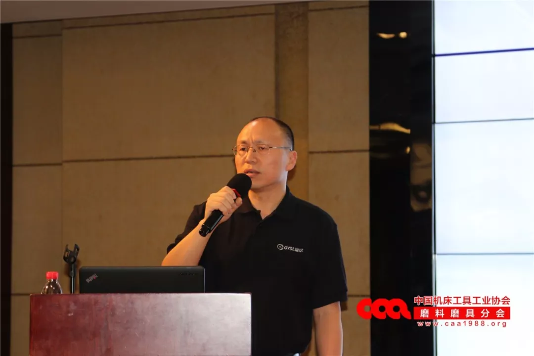 山东鲁信四砂泰山磨料有限公司总经理徐纪凤女士作了《陶瓷微晶磨料及高效精密磨削系列磨具制备技术》的报告。